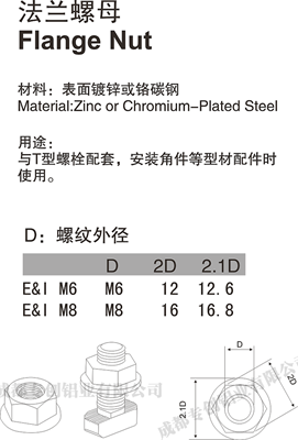 與T型螺栓配套,安裝角件等型材配件時使用。